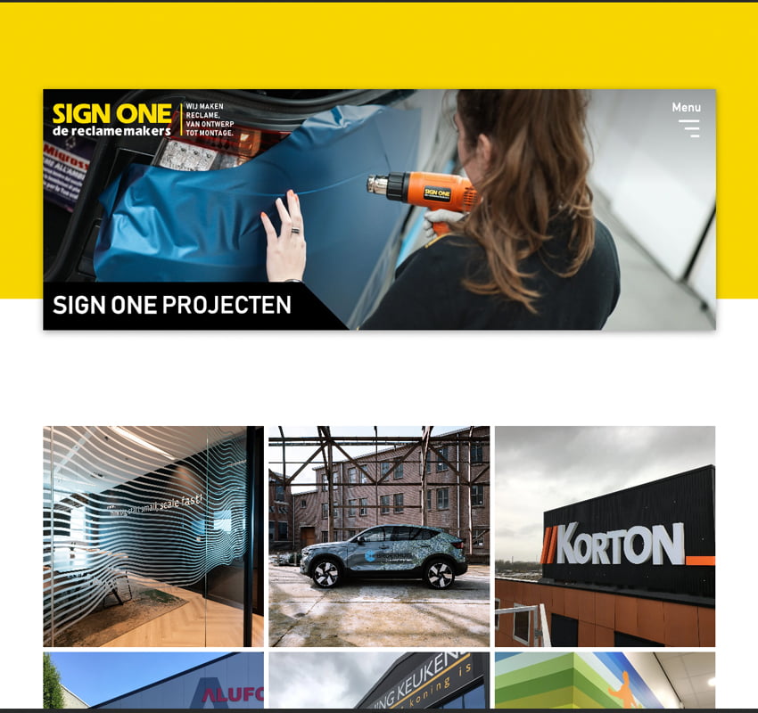 Strak, duidelijk en helder. Dat is de website van Sign One geworden. Makkelijk aan te passen zodat de nieuwste projecten snel zichtbaar zijn. De website van Sign One is een reclamebord voor reclameborden.